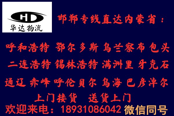 邯鄲到呼和浩特物流歡迎您的來電(0310-5510646//18931086042靳經(jīng)理)邯鄲到呼和浩特物流專線,邯鄲到呼和浩特物流公司的詳細(xì)介紹頁面。