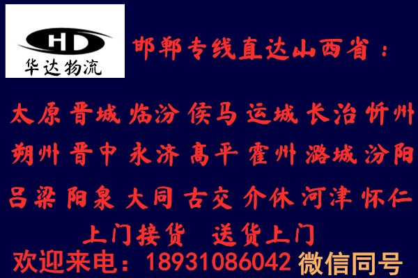 邯鄲到晉中物流公司運(yùn)費(fèi)查詢(xún):18931086042華達(dá)物流以一流的服務(wù)體系,本著安全,準(zhǔn)時(shí),互友,互惠的原則贏得市場(chǎng),只要一個(gè)電話(huà),一切由我公司操辦, 望廣大新老客戶(hù)給予大力支持、與我公司聯(lián)絡(luò),我們將竭誠(chéng)為您提供一切方便,歡迎來(lái)人來(lái)電咨詢(xún)!